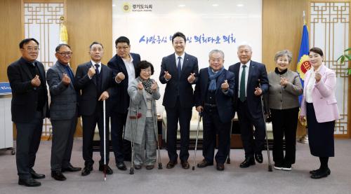 [¸ÅÀϹæ¼Û=È«¼®ÁØ ±âÀÚ] °æ±âµµÀÇȸ ±èÁø°æ ÀÇÀå(´õ¹ÎÁÖ¡¤½ÃÈï3)Àº 25ÀÏ °æ±âµµÀå¾ÖÀκ¹Áö´Üü¿¬ÇÕȸ ´Üüµé°ú Á¤´ãȸ¸¦ °®°í, ¿ÃÇØ ´ëºñ ´ëÆø »è°¨ Æí¼ºµÈ °æ±âµµÀÇ ³»³âµµ Àå¾ÖÀκ¹Áö ¿¹»ê¿¡ ´ëÇÑ °·ÂÇÑ º¹¿ø ÀÇÁö¸¦ ¹àÇû´Ù.