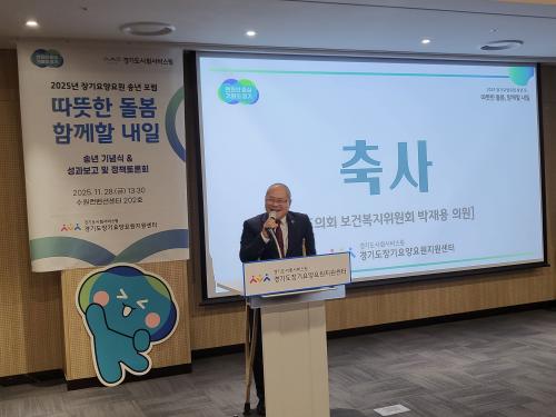 [¸ÅÀϹæ¼Û=È«¼®ÁØ ±âÀÚ] °æ±âµµÀÇȸ º¸°Çº¹ÁöÀ§¿øÈ¸ ¹ÚÀç¿ë ÀÇ¿ø(´õºÒ¾î¹ÎÁÖ´ç, ºñ·Ê)Àº 28ÀÏ, ¼ö¿øÄÁº¥¼Ç¼¾ÅÍ¿¡¼­ ¿­¸° ¡®2025 Àå±â¿ä¾ç¿ä¿ø ¼Û³â Æ÷·³¡¯¿¡ Âü¼®ÇØ Àå±â¿ä¾ç¿ä¿øÀÇ Ã³¿ì°³¼±°ú Áö¼Ó°¡´ÉÇÑ µ¹º½ ȯ°æ Á¶¼ºÀ» À§ÇÑ ÀÇȸÀÇ ¿ªÇÒÀ» °­Á¶Çß´Ù. À̹ø Æ÷·³¿¡´Â °æ±âµµÀÇȸ º¸°Çº¹ÁöÀ§¿øÈ¸ ±èµ¿±Ô ÀÇ¿ø(´õºÒ¾î¹ÎÁÖ´ç, ¾È»ê1)µµ ÇÔ²²ÇØ ÇöÀåÀÇ ÀǰßÀ» °æÃ»Çϰí Àå±â¿ä¾ç Á¾»çÀÚµéÀ» °Ý·ÁÇß´Ù.