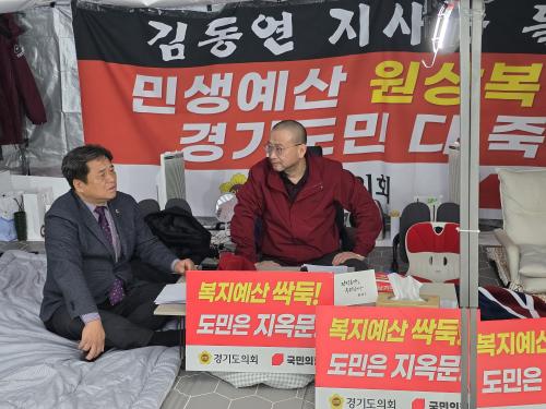 [¸ÅÀϹæ¼Û=È«¼®ÁØ ±âÀÚ] °æ±âµµÀÇȸ ±¹¹ÎÀÇÈû ±èÈ£°â ÀÇ¿øÀÌ 1ÀÏ, °æ±âµµÀÇȸ ¾Õ ´Ü½Ä ³ó¼ºÀåÀ» ã¾Æ ´Ü½Ä 7Àϰ¸¦ À̾°í ÀÖ´Â ¹éÇöÁ¾ ´ëÇ¥ÀÇ¿øÀÇ °Ç°°ú ÇöÀå »óȲÀ» »ìÆñ´Ù. ¹é ´ëÇ¥ÀÇ¿øÀº °æ±âµµ°¡ Á¦ÃâÇÑ 2026³âµµ º»¿¹»ê¾È¿¡¼ º¹Áö¡¤¾ÈÀü µî µµ¹Î »ýȰ°ú Á÷Á¢ ¿¬°áµÇ´Â ¿¹»êÀÌ Å©°Ô »è°¨µÈ °Í¿¡ ¹®Á¦¸¦ Á¦±âÇϸç Áö³´Þ 25ÀϺÎÅÍ ´Ü½Ä¿¡ µé¾î°£ »óÅ´Ù.
