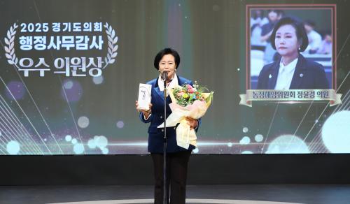 [¸ÅÀϹæ¼Û=È«¼®ÁØ ±âÀÚ] °æ±âµµÀÇȸ Á¤À±°æ ºÎÀÇÀå(´õºÒ¾î¹ÎÁÖ´ç, ±ºÆ÷1)Àº Áö³ 8ÀÏ OBS°¡ ÁÖ°üÇÑ ¡®Áö¹æÀÚÄ¡ 30ÁÖ³â Æ¯Áý °æ±âµµÀÇȸ ÇàÁ¤»ç¹«°¨»ç ¿ì¼öÀÇ¿ø¡¯¿¡ ¼±Á¤µÇ¾î ¼ö»óÀÇ ¿µ¿¹¸¦ ¾È¾Ò´Ù.