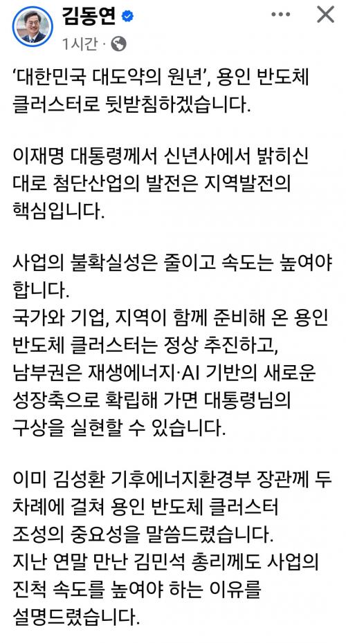±è Áö»ç´Â "±¹°¡¿Í ±â¾÷, Áö¿ªÀÌ ÇÔ²² ÁغñÇØ ¿Â ¿ëÀÎ ¹ÝµµÃ¼ Ŭ·¯½ºÅÍ´Â Á¤»ó ÃßÁøÇϰí, ³²ºÎ±ÇÀº Àç»ý¿¡³ÊÁö¡¤AI ±â¹ÝÀÇ »õ·Î¿î ¼ºÀåÃàÀ¸·Î È®¸³ÇØ °¡¸é ´ëÅë·É´ÔÀÇ ±¸»óÀ» ½ÇÇöÇÒ ¼ö ÀÖ´Ù"°í °Á¶Çß´Ù.