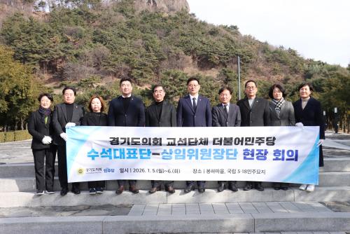 [¸ÅÀϹæ¼Û=È«¼®ÁØ ±âÀÚ] °æ±âµµÀÇȸ ±³¼·´Üü ´õºÒ¾î¹ÎÁÖ´ç(´ëÇ¥ÀÇ¿ø ÃÖÁ¾Çö, ¼ö¿ø7) ¼ö¼®´ëÇ¥´Ü°ú »óÀÓÀ§¿øÀå´ÜÀÌ ÇöÀ广¹® ÀÏȯÀ¸·Î Áö³­ 5ÀÏ Íº³ë¹«Çö ´ëÅë·É ¹¦¿ªÀÌ ÀÖ´Â ºÀÇϸ¶À»À» ¹æ¹®ÇÏ¿© Âü¹èÇß´Ù.