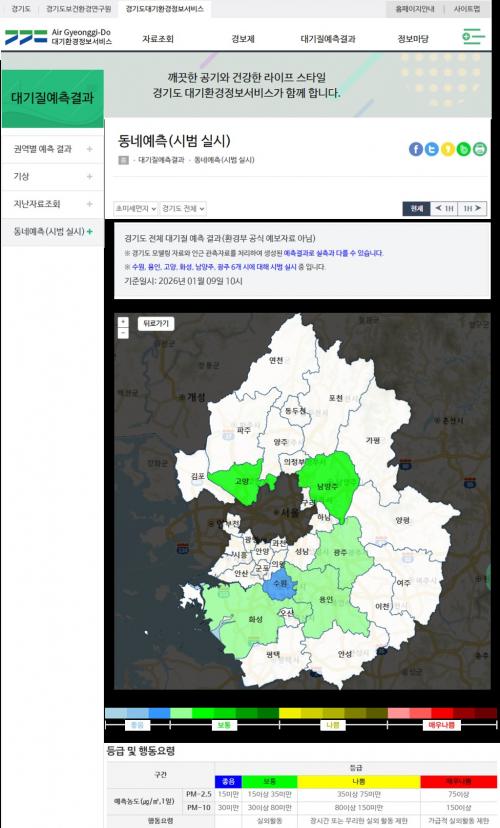 ÇöÀç´Â °æ±âµµ 4°³ ±Ç¿ª ´ÜÀ§·Î ¹Ì¼¼¸ÕÁö ¿¹Ãø °á°ú¸¦ Á¦°øÇØ µµ¹ÎÀÇ ½ÇÁ¦ »ýȰ±Ç ´ë±âÁú Á¤º¸¸¦ Á¦°øÇÏ´Â µ¥ ÇѰ谡 ÀÖ¾ú´Ù.