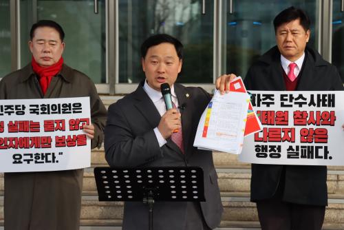 [¸ÅÀϹæ¼Û=È«¼®ÁØ ±âÀÚ] °æ±âµµÀÇȸ °íÁØÈ£ ÀÇ¿ø(±¹¹ÎÀÇÈû, ÆÄÁÖ1)Àº 15ÀÏ Áö³­ 2025³â 11¿ù 14ÀÏ ÆÄÁֽà Àα¸ 41¸¸ ¸í, 17¸¸ ¼¼´ë°¡ ´Ü¼ö¸¦ °ÞÀº »çÅ¿¡ ´ëÇØ ±âÀÚȸ°ßÀ» ¿­°í ¡°ÆÄÁֽô ¿øÀÎÀÚ(k-water) °¡ ÀÖ´Ù´Â ÀÌÀ¯·Î À̹ø »çŸ¦ ³¡±îÁö ¡®»ç°í¡¯·Î ±ÔÁ¤Çϰí ÀÖÁö¸¸, ¿øÀÎÀÚÀÇ Á¸Àç´Â »çȸÀç³­ ÆÇ´Ü ±âÁØÀÌ µÉ ¼ö ¾ø´Ù¡±¸ç ¡°ÀÌÅ¿ø Âü»ç ÀÌÈÄ °³Á¤µÈ ¡¸Àç³­ ¹× ¾ÈÀü°ü¸® ±âº»¹ý¡¹Àº ¼öµµ½Ã¼³ ÆÄ¼ÕÀ¸·Î ÀÎÇÑ ´ë±Ô¸ð ÇÇÇØ¸¦ ¸íÈ®È÷ »çȸÀç³­ À¯Çü¿¡ Æ÷ÇÔÇϰí ÀÖ°í, ±× ÆÇ´Ü°ú ´ëÀÀÀº ÁöÀÚüÀÇ Ã¥¹«¡±¶ó°í °­Á¶Çß´Ù.