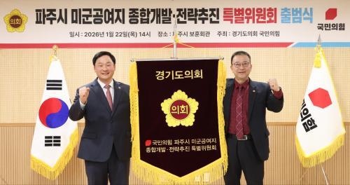 À̳¯ °æ±â ÆÄÁֽà º¸ÈÆÈ¸°ü¿¡¼ ¿¸° ¡®°æ±âµµÀÇȸ ±¹¹ÎÀÇÈû ÆÄÁֽà ¹Ì±º°ø¿©Áö Á¾ÇÕ°³¹ß¡¤Àü·«ÃßÁø Ưº°À§¿øÈ¸¡¯ Ãâ¹ü½Ä¿¡´Â ¹éÇöÁ¾ ´ëÇ¥ÀÇ¿ø°ú °íÁØÈ£ Ưº°À§¿øÀåÀ» ºñ·ÔÇØ ±¹¹ÎÀÇÈû ¼Ò¼Ó µµÀÇ¿øµéÀÌ ´Ù¼ö Âü¼®Çß´Ù.