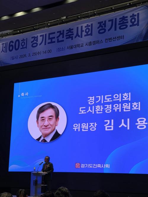 [¸ÅÀϹæ¼Û=È«¼®ÁØ ±âÀÚ] °æ±âµµÀÇȸ µµ½Ãȯ°æÀ§¿øÈ¸ ±è½Ã¿ë À§¿øÀå(±¹¹ÎÀÇÈû¡¤±èÆ÷3)Àº 25ÀÏ °æ±âµµ°ÇÃà»çȸ Á¦60ȸ Á¤±âÃÑȸ¿¡ Âü¼®ÇØ °ÇÃà ºÐ¾ß ¹ßÀüÀ» À§ÇØ Çå½ÅÇØ ¿Â °ü°èÀڵ鿡°Ô °¨»ç¿Í °Ý·ÁÀÇ ¶æÀ» ÀüÇß´Ù.