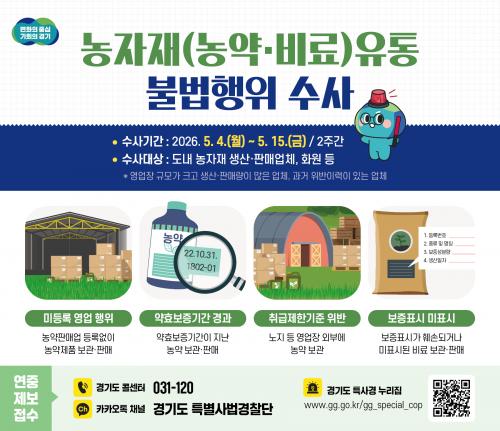 [¸ÅÀϹæ¼Û=È«¼®ÁØ ±âÀÚ] °æ±âµµ Ưº°»ç¹ý°æÂû´ÜÀº ´ÙÀ½´Þ 4ÀϺÎÅÍ 15ÀϱîÁö µµ³» ³ó¾à »ý»ê¡¤ÆÇ¸Å¾÷ü, ³óÀÚÀçÁ¡, È¿ø µî 300°÷À» ´ë»óÀ¸·Î ºÒ¹ý À¯ÅëÇàÀ§¸¦ ÁýÁß¼ö»ç ÇÑ´Ù.