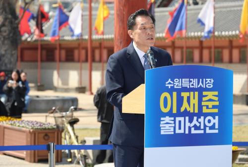 [¸ÅÀϹæ¼Û=È«¼®ÁØ ±âÀÚ] ÀÌÀçÁØ ¼ö¿øÆ¯·Ê½ÃÀåÀÌ 8ÀÏ ¿ÀÈÄ ¼ö¿øÀÇ ½ÉÀåºÎÀΠȼºÇà±Ã ±¤Àå¿¡¼ ±âÀÚȸ°ßÀ» ¿°í "¼ö¿ø ´ëÀüȯÀÇ ¿Ï¼ºÀ» À§ÇØ ¹Î¼± 9±â ¼ö¿ø½ÃÀå Àç¼±¿¡ Ã⸶ÇÑ´Ù"°í °ø½Ä ¼±¾ðÇß´Ù.