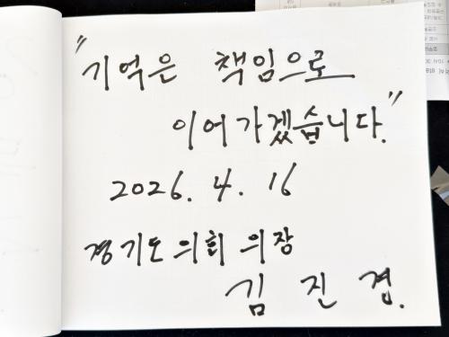°æ±âµµÀÇȸ ±èÁø°æ ÀÇÀå, ¡°±â¾ïÀº Ã¥ÀÓÀ¸·Î À̾°Ú½À´Ï´Ù¡± 16ÀÏ ¡®¼¼¿ùÈ£ Âü»ç 12Áֱ⠱â¾ï½Ä¡¯ Âü¼® |
