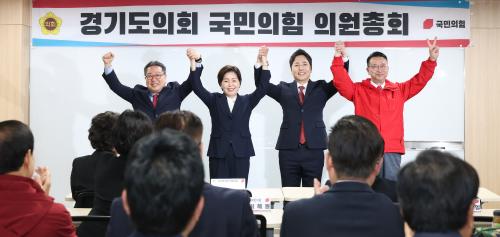 µµÁö»ç Ã⸶¸¦ ¼±¾ðÇÑ ±¹¹ÎÀÇÈû ¼Ò¼Ó ¾çÇâÀÚ ÃÖ°íÀ§¿ø, Á¶±¤ÇÑ ÃÖ°íÀ§¿ø, À̼º¹è Àü MBC ¾Æ³ª¿î¼´Â °£´ãȸ Á÷ÈÄ Á¦389ȸ °æ±âµµÀÇȸ ÀÓ½Ãȸ °³È¸ ù³¯À» ¸Â¾Æ ¿¸° ±¹¹ÎÀÇÈû ÀÇ¿øÃÑȸ¿¡ Âü¼®ÇØ ¡®º¸¼ö Àç°Ç¡¯ ¡®±¹¹ÎÀÇÈû Á¤»óÈ¡¯¿¡ ÇѸñ¼Ò¸®¸¦ ³»¸ç ÁöÁö¸¦ È£¼ÒÇß´Ù.