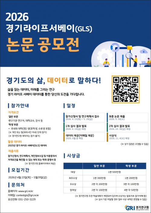 °æ±â¿¬±¸¿øÀº À̹ø Á¶»ç¸¦ ÅëÇØ È®º¸ÇÑ ´ë±Ô¸ð µ¥ÀÌÅ͸¦ ±â¹ÝÀ¸·Î µ¥ÀÌÅÍ Áß½ÉÀÇ °úÇÐÀû ÇàÁ¤À» µÞ¹ÞħÇϰí, Áõ°Å ±â¹Ý ¿¬±¸ ¿ª·®À» ÇÑÃþ °ÈÇÏ´Â µ¥ ÁÖ·ÂÇÒ ¹æÄ§ÀÌ´Ù. ¿¬±¸ µ¥ÀÌÅÍÀÇ Áö¼Ó°¡´É¼ºÀ» È®º¸Çϰí âÀÇÀûÀÎ ºÐ¼® ¾ÆÀ̵ð¾î¸¦ ÅëÇØ Á¤Ã¥ Ȱ¿ëµµ¸¦ ³ôÀ̱â À§ÇØ ¡®2026³â °æ±â ¶óÀÌÇÁ ¼º£ÀÌ(GLS) ³í¹® °ø¸ðÀü¡¯À» °³ÃÖÇÒ ¿¹Á¤À̸ç, À̸¦ ÅëÇØ µµÃâµÈ Á¦¾È°ú ºÐ¼® °á°ú¸¦ ½ÇÁúÀûÀÎ Á¤Ã¥ ±Ù°ÅÀÚ·á·Î Ȱ¿ëÇÒ °èȹÀÌ´Ù.